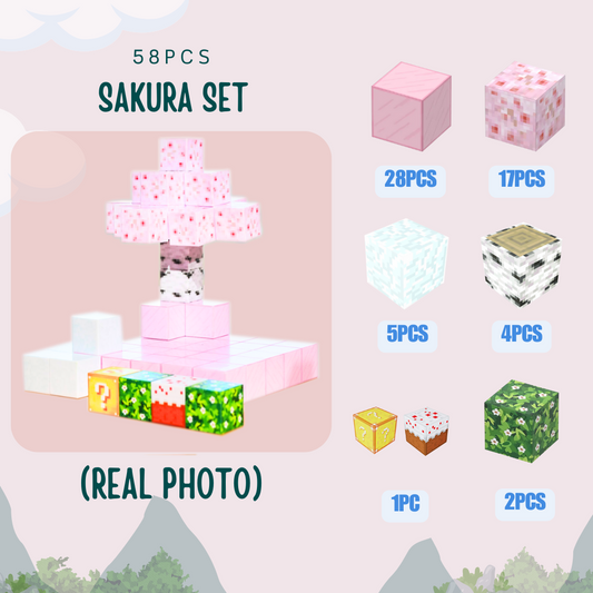 58-teiliges Sakura-Set | Oh My Craft Magnetische Bausteine-Würfel-Bausätze