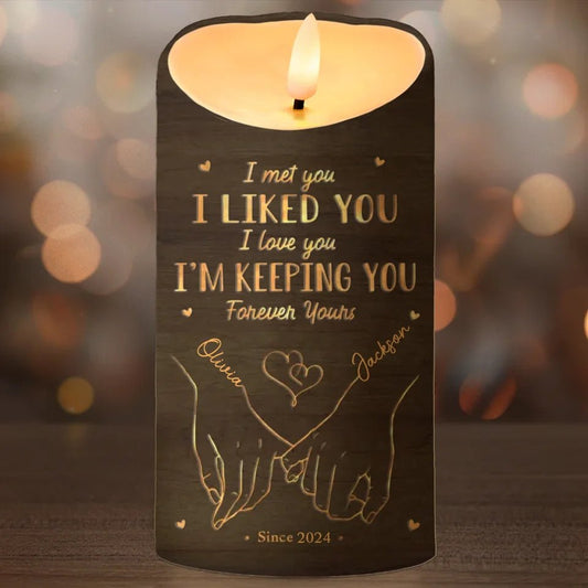 Liebe ist eine Flamme, die nie erlischt – Personalisierte LED-Kerze für Paare – Weihnachtsgeschenk für Ehemann und Ehefrau, Jahrestag