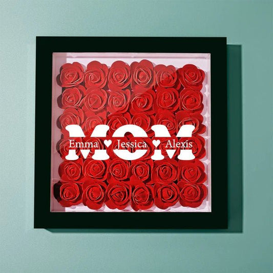 Personalisierte Blumen-Schattenbox mit 3 Namen Muttertagsgeschenke für Mama