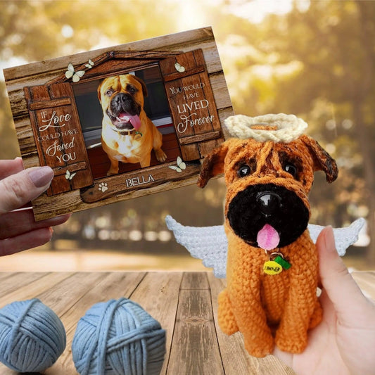 In liebevoller Erinnerung, personalisierte Häkelpuppengeschenke, handgefertigte Minipuppen sehen Ihrem Foto mit individueller Gedenkkarte ähnlich