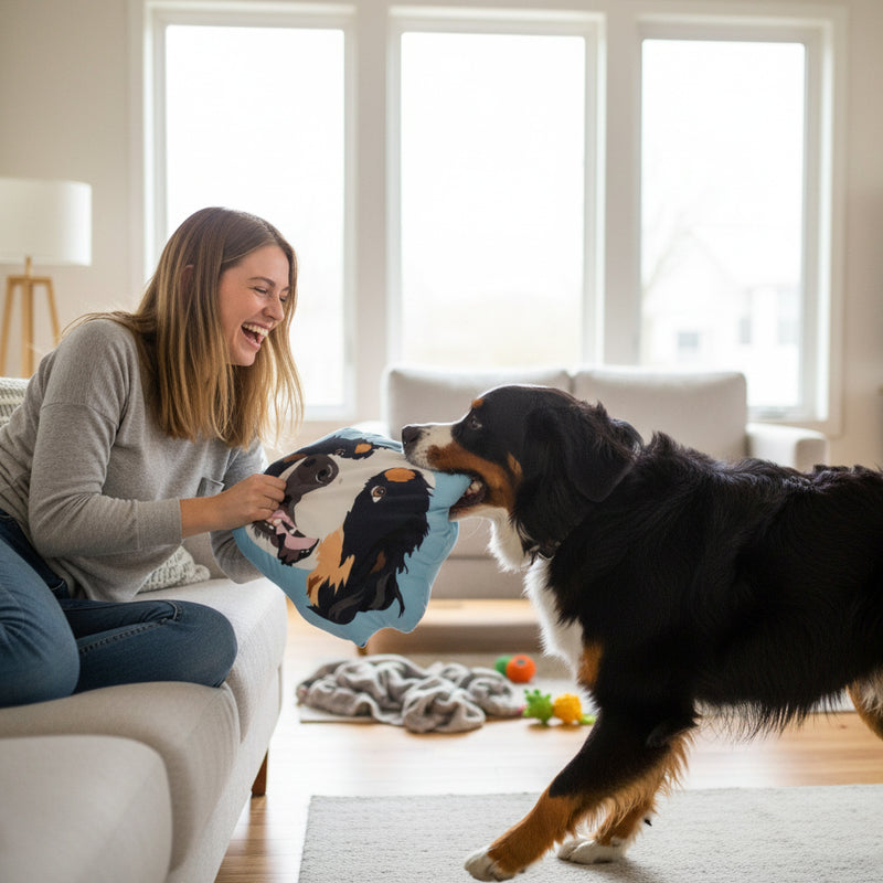 This personalized pillow isn’t just for display—pets love it too. Whether it’s gentle tug-of-war, playful moments on the couch, or simply creating laughter at home, it becomes a cute bridge that brings you and your pet even closer.