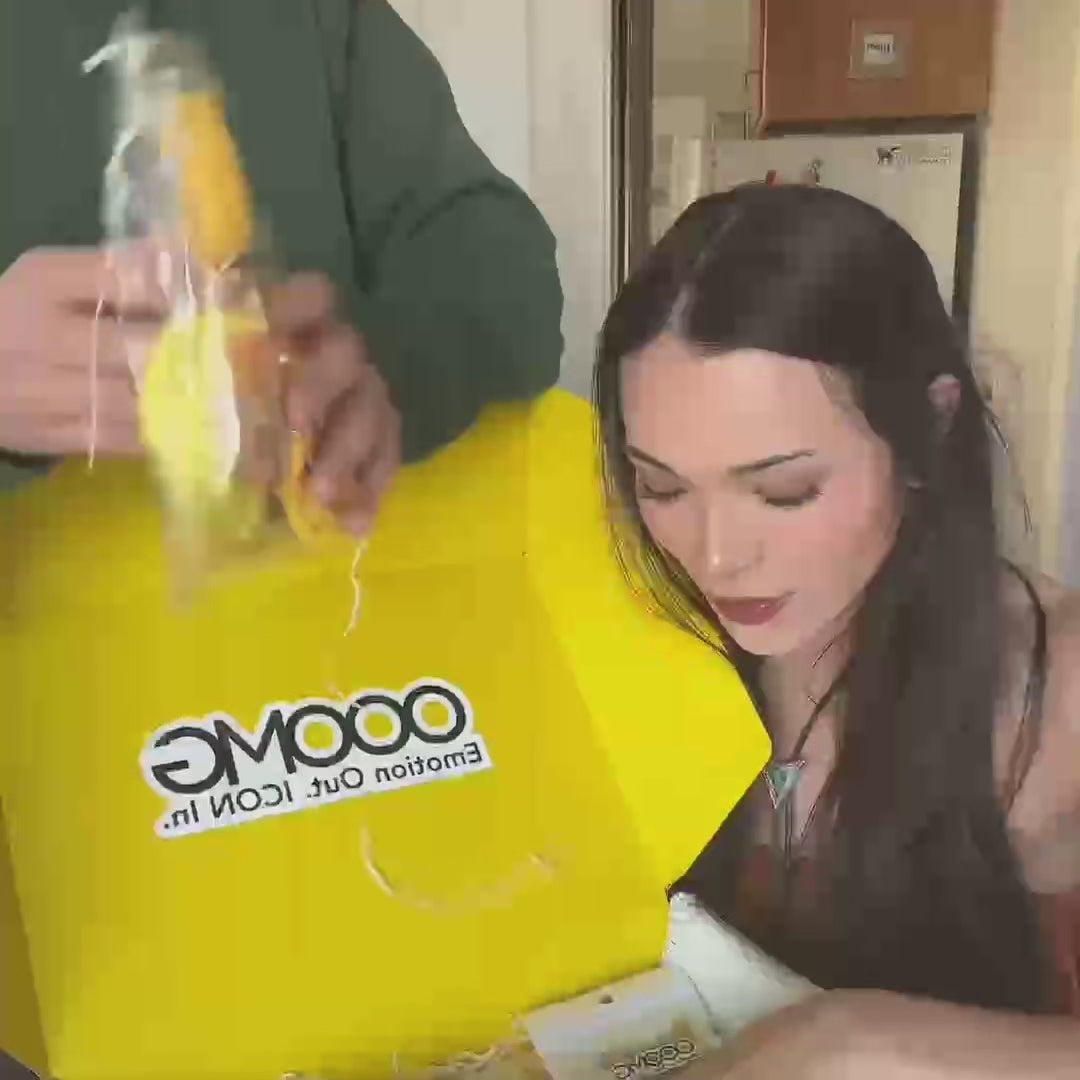 Yellow boxes with 'OOMG' branding on a white background