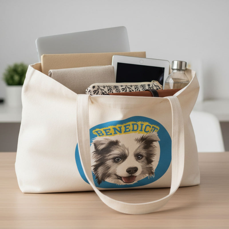 Carry your furry friend with you wherever you go. This custom tote turns your pet into a wearable ICON, adding personality and warmth to every outfit—from casual weekends to daily commutes.